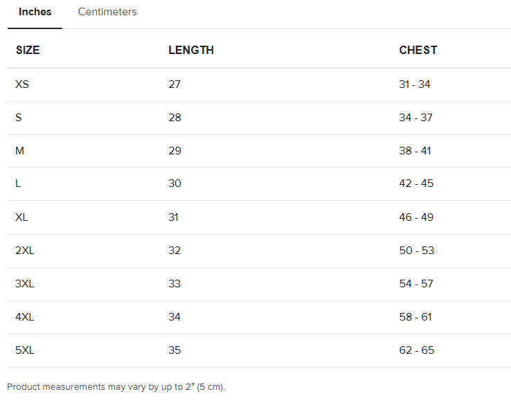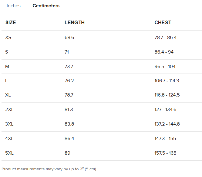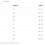 LENGTH (inches) WIDTH (inches) CHEST (inches)